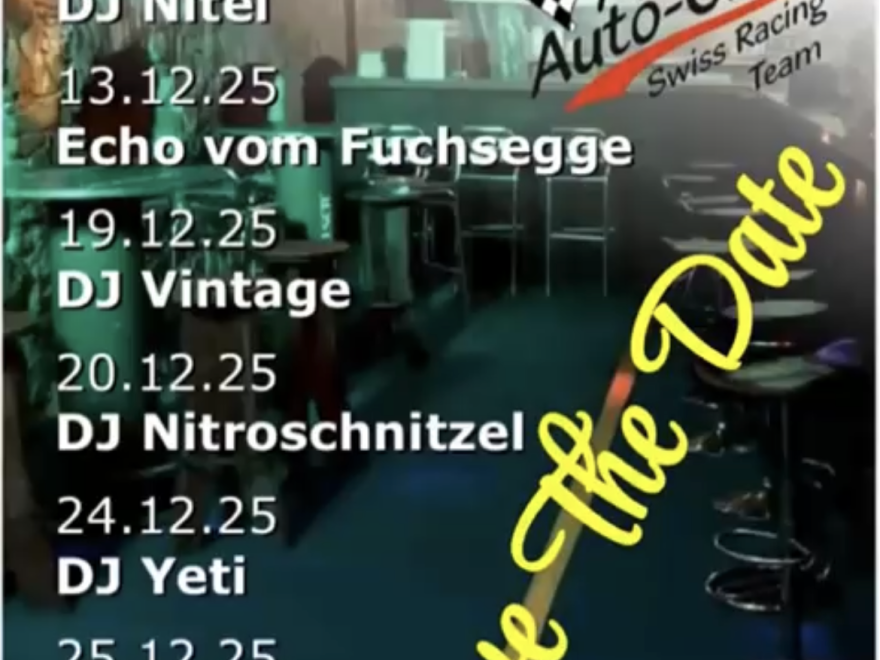 Die Daten für die Autocross-Bar sind bekannt. Der Ort wie immer in Hütten und die musikalische Unterhaltung verspricht viel Abwechslung!